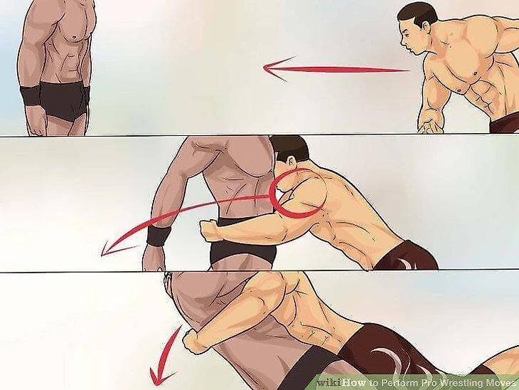 Ударьте соперника плечом и бицепсом по центру туловища. Убедитесь, что ваша голова и шея не соприкасаются с противником. Если вы этого не сделаете, вы можете получить серьезные травмы. Вы должны схватить туловище противника рукой. Однако не пытайтесь обхватить его полностью, иначе вы можете зажать руку под своим оппонентом, когда он приземлится.