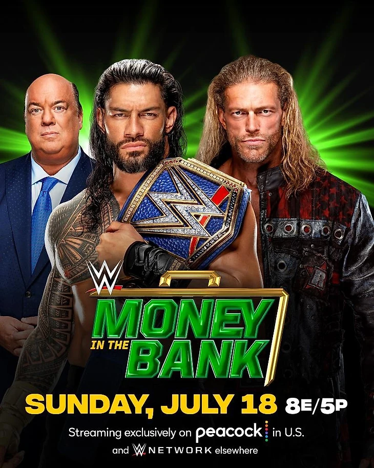 UPD: на шоу Talking Smack были показаны фрагменты после завершения выпуска, в которых Эдж потребовал от Адама Пирса и Сони Девилль матча на Money In The Bank за чемпионство Вселенной против Романа Рейнса. И он чётко давал понять, что ему нужен именно титульный бой 1 на 1 без лишних участников - Пирс утвердил кандидатуру Эджа в качестве нового претендента. И это всё было показано во время диалога Кайлы Брэкстон и Пэта МакАфи с... Сетом Роллинсом (человеком, которому Пирс и Девилль дали обещание принять решение в пользу Сета, как только изучат слова от чемпиона). И WWE официально подтвердили назначение этого боя.