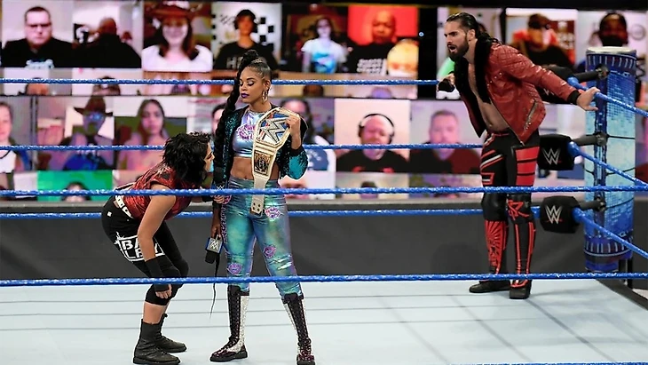 1) Сезаро и Бьянка Белэйр против Сета Роллинса и Бэйли - межгендерный командный поединок.