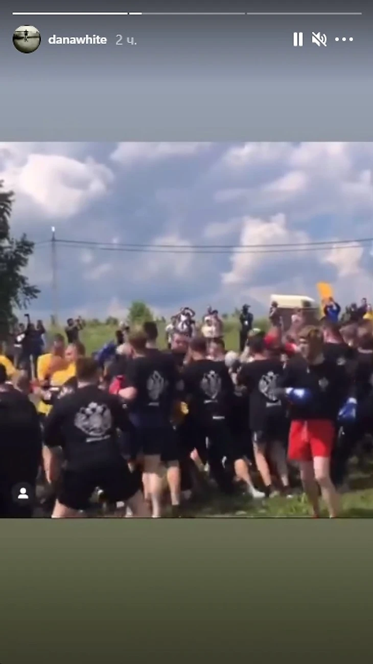 Дэйна Уайт тоже не прошёл мимо России, где-то глянув кадры современной драки стенки на стенку. На Stories, которые «Лысый» опубликовал в Instagram, сразу же бросается в глаза герб с орлом на футболках участников. На самом деле, это недельной давности заруба под эгидой общества «Двуглавый Орёл», которая прошла на фестивале «За Русский Мир». Организаторы уверяют, что в бою сошлись 250 человек.