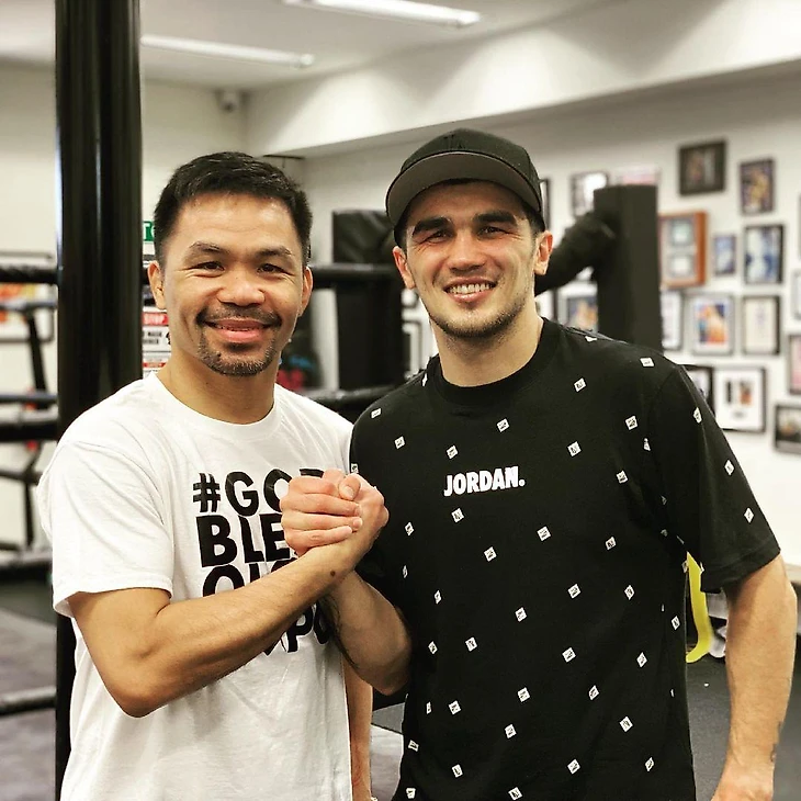 Боксер RCC Boxing Promotions Шавкат Рахимов встретился с легендарным чемпионом мира в восьми весовых категориях Мэнни Пакьяо. И Шавкат, и Мэнни готовятся к своим поединкам в зале Фредди Роуча.