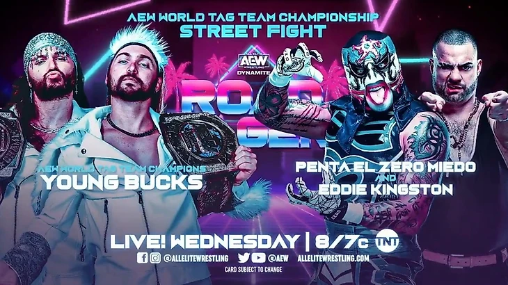 Young Bucks победили Пенту Эль Зиро Мьедо и Эдди Кингстона в матче по правилам уличной драки и защитили мировое командное чемпионство AEW, после того как Баксы напихали в рот Эдди Кингстона канцелярских кнопок, вдарили ему по лицу суперкиками и вдвоем удержали его (14:16)