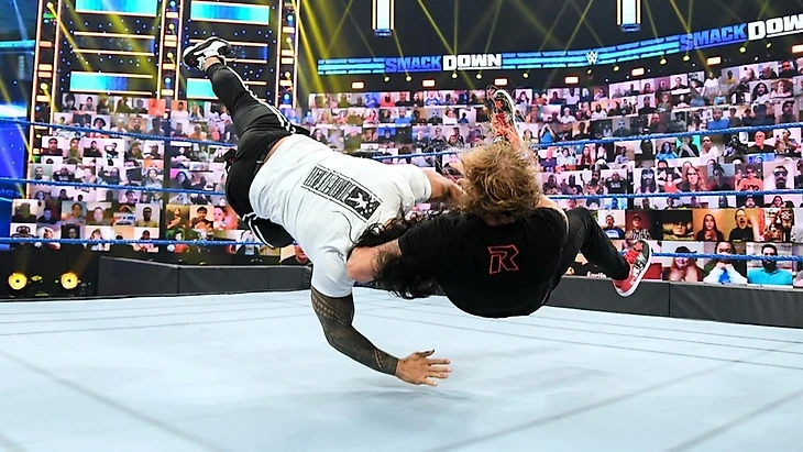 Роман Рейнс, наблюдая за речью Эджа, решил лично и без сопровождения от Усо ответить на слова. Казалось - всё идёт к драке между ними 1 на 1, но Усо пошли на то, чтобы ослушаться Романа и этим удивили его, но не Эджа. Рейнс не стал прогонять Джимми и Джея - он настаивал на том, чтобы хотя бы тут он оставались на месте. Чемпион Вселенной уже был на апроне для входа в ринг и Эдж даже дал ему пространство для этого. И началась та самая именно между Рейнсом и Эджем, но в этот раз у Усо не было возможности вмешаться в драку, чтобы уничтожить Эджа - потому что Джимми и Джей подверглись атаке со стороны Рея и Доминика Мистерио со стульями в руках. Драка 1 на 1 прерватилась в побоище 3 на 3 - и тут удача оказалась на стороне обиженных и оскорблённых от рук Главы Стола. Рейнс моментально, чувствуя поражение, покинул ринг и оказался на рампе - Джей оказался нейтрализован и Эдж повторил свой ключевой трюк уже на Джее. Это было его последним недостающим звеном в угрозе жизни для Рейнса, послание к Money In The Bank, не без помощи от командных чемпионов бренда. Роман так и не пришёл на помощь своим кузенам, а Эдж повторил свой трюк на Джимми, затем снова на Джее и тут Мистерио активно помогали "Запрещённой Суперзвезде". На этом всём жестоком действии шоу вышло из прямого эфира.