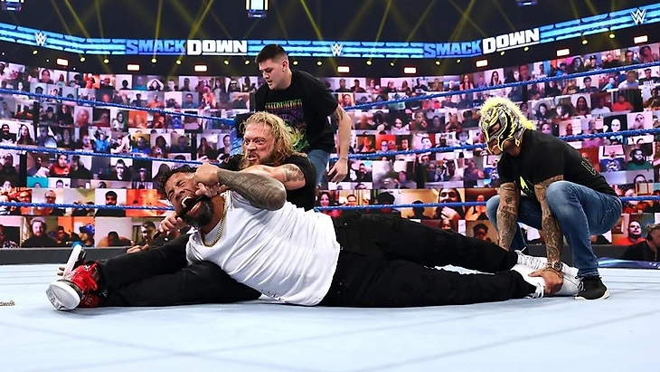 Тем более что Рей и Доминик таким образом выполняют своё обещание - мстить Роману Рейнсу за его поступки в их отношении, а также очистить себя от пятен "крови", которую сам чемпион не побоялся бы пустить обоим командным чемпионам. Ну и в-третьих - Рейнс всё-таки не изменился, в том плане что он не поощряет своеволия от Усо и что последующие действия от фейсов - это не только акт мести, но и наказание от Романа с посылом "Я же вам говорил - дайте мне разобраться самому, не нарушайте плана". В таких обстоятельствах упрекать Романа в трусости нет смысла - ибо он вышел один и был готов к встрече с Эджем, хоть и чувствовал возможную ловушку от него самого. Да и Усо, откровенно говоря, всё равно пришли бы на помощь брату - потому что в случае коллективного избиения главного чемпиона, они не стали бы сидеть сложа руки. Сегмент сам по себе выглядел так таковым парадоксом - не будь того, что получилось по итогу, вышло бы иначе, но результат был одним и тем же. Так что Рейнс получил для себя повод закрепить ошейники на Усо, чтобы те более не смели показывать своего своеволия.