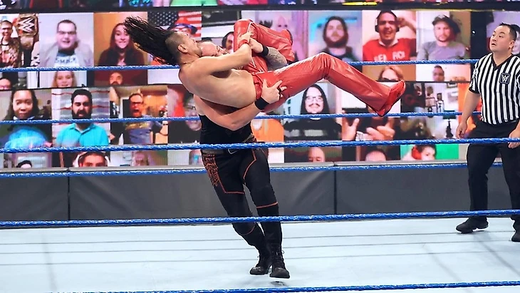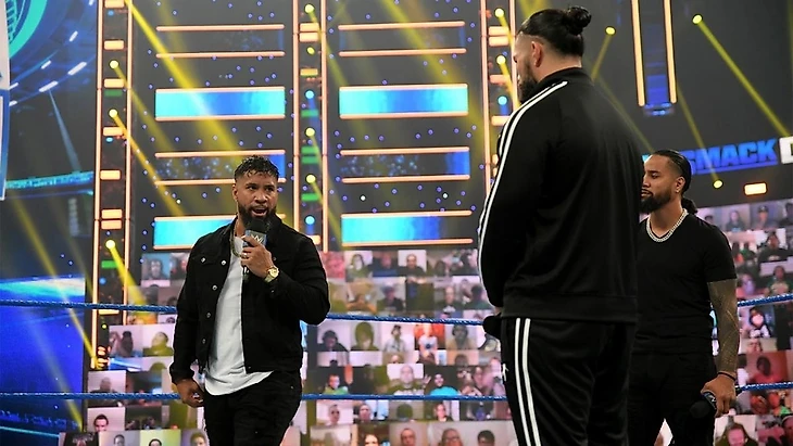 И кстати о семье - после специальной паузы от чемпиона, на ринг вышел Джимми Усо для того самого разговора. Усо возмущался по поводу ситуации с прошлой недели, ибо он совершал свои действия во имя их семьи - не ради какой-то выгоды для самого себя отдельно. А почему Роман вдруг решил устроить себе выходной в такой момент и оставил Джимми в одиночестве? Рейнс возмущённо, но с долей самодовольства подчеркнул - Джимми не следовало проявлять инициативу в отсутствие Романа и дело обернулось против Джимми, что и было ожидаемо. И да, про выходные - Роман может себе их позволить на своё усмотрение, только вот сейчас не та ситуация для расслабона. Особенно когда Роману пришлось самостоятельно... решать ту задачу, которую Рейнс давал Джимми отдельно неделями ранее. И которую Джимми не удалось решить так, как это должно было быть.