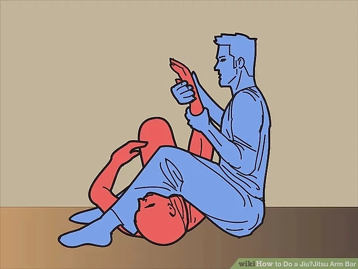 Возьмитесь за предплечье вашего оппонента обеими руками так, чтобы его запястье было обращено вверх - он должен быть на спине для конкретно этой версии. Расположите ноги так, чтобы колени были согнуты, а рука и локоть принимающего находились между ваших ног.