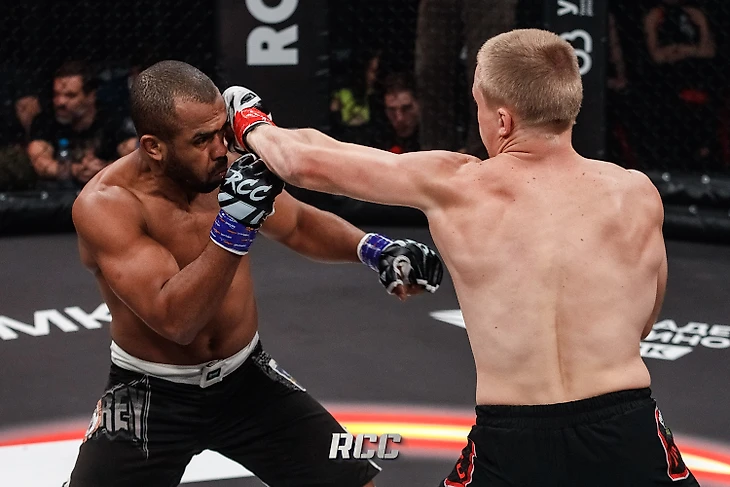 В восьмом поединке вечера RCC: Intro 14 зрители увидели первое российско-бразильское противостояние турнира. Евгений Игнатьев (Талица, 16-2-2) встречался с Радни Карвальо (Кампус-Дус-Гойтаказис, 8-1) в категории до 66 кг.