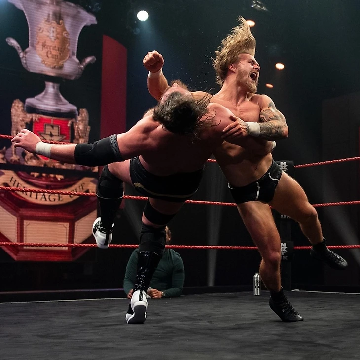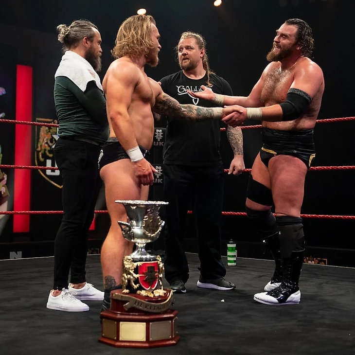 После матча Moustache Mountain и Gallus, судя по всему, решили обсудить прошедший матч и после долгих колебаний все же пожали руки. Когда Бэйт поднимал с ринга Кубок Наследия, Марк судя по всему порывался напасть на усача, но был остановлен Вольфгангом.