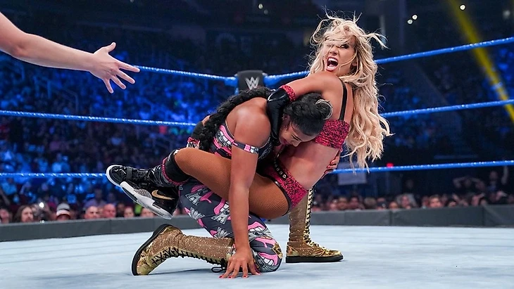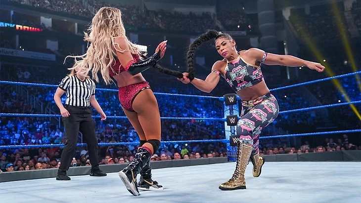 3) Бьянка Белэйр против Кармеллы - титульный поединок за женское чемпионство SDLive WWE.