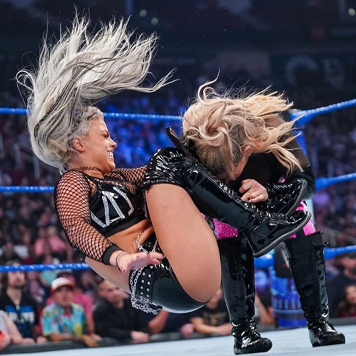 Драка не закончилась после матча - к ней присоединились уже Тамина и Наталья, которые не были довольны своим поражением из-за остальных участниц лестничного боя за кейс. Но если на Веге командным чемпионкам удалось оторваться по полной программе, то вот Лив перевернула всё в свою сторону, завершив потасовку коронным ObLIVion.