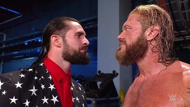 Тут его перебил смех Сета Роллинса, который принялся высмеивать настрой Эджа - потому что, несмотря на манию собственного величия у Рейнса, он как и Сет знает физические слабости Эджа. Хотя Роллинс готов, как и в былые времена, болеть за победу Эджа над Романом - потому что только ради этого момента Сет будет готов сделать то, чего не сумел реализовать 7 лет назад с ним. Он втопчет своим сапогом его голову в ринг и произведёт свой кэш-ин на Эдже, лишив его чемпионства Вселенной на глазах у людей.