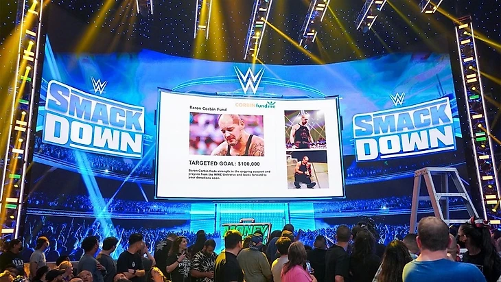 Следом перед матчем прошёл сегмент с Бэроном Корбином - тот в печальной манере рассказал о том, что из-за потери короны он лишился всех своих материальных благ: денег, будущих инвестиций, дома (его арестовали судебные приставы), также он и его семья могут переехать к родителям жены, плюс его 2-летняя дочка серьёзно заболела и лишилась возможности нормально питаться. Корбин понимает, что его преследуют одни неудачи и падения, но он не сдаётся, хоть и вынужден просить фанатов помочь ему спасти оставшееся в его руках. Поэтому он создал специальный фонд и сайт, чтобы фанаты могли пожертвовать ему столько, сколько им это под силу - общая сумма должна быть в рамках 100 тысяч долларов для покрытия всех ключевых долгов. Корбин даже встал на колени ради того, чтобы добиться от жителей Техаса понимания и сочувствия, считая их не такими дешёвками как людей из других штатов.