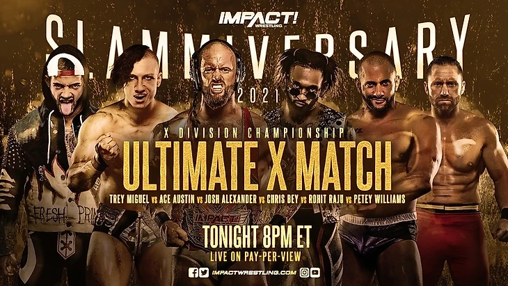 1) Джош Александер против Эйса Остина против Трея Мигеля против Криса Бэя против Рохита Раджу против Пити Уильямса - титульный поединок за чемпионство Х-Дивизиона IMPACT по правилам Ultimate X Match.