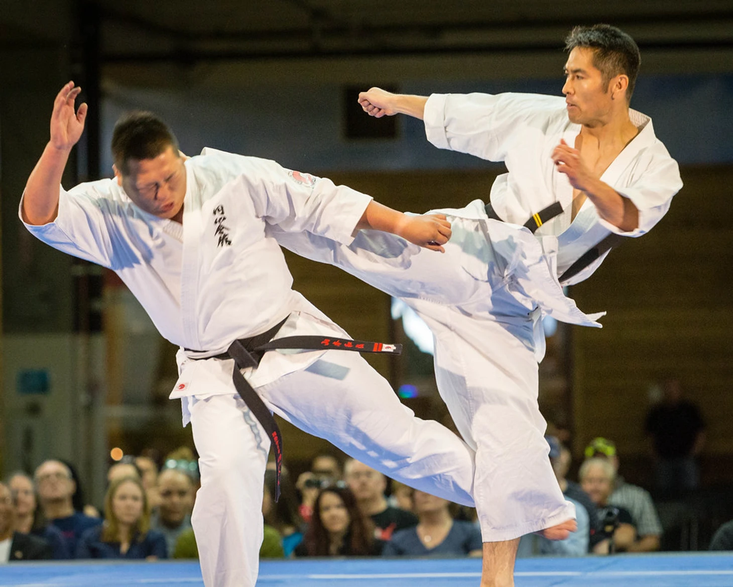 Киокусинкай - собственно, самый известный. И именно элементы киокусинкая чаще всего представлены в фильмах про каратистов, потому что данный стиль имеет богатую базу ударов ногами по разным этажам - а зрителям только и подавай, что с вертухи в табло. А ещё киокусинкай изобрёл "маваси-гери" (в более старых видах карате удары ногами менее амплитудные и более прямолинейные по траектории). К сожалению, в данном стиле запрещены удары руками в голову - зато 80% боёв по киокусинкаю на крупных соревнованиях являются фестивалем апперкотов в область пресса. Многие совершают огромную ошибку, навешивая на киокусинкай ярлык "детского стиля" из-за отсутствия ударов руками по лицу - но и с этим обстоятельством данный вид очень жёсткий по тяжести наносимых увечий. Поверьте, проникающий кулак хорошего киокусиновца в живот - это особый вид боли. И да, ещё бои в данном стиле известны по нарезкам акробатических ударов в воздухе, потому что основатель киокусинкая, Масутацу Ояма, был этническим корейцем и хорошо владел тхэквондо. Потом именно отсюда база ударов ногами легла в основу кикбоксинга. Кстати, обычно в этом стиле бьются на короткой дистанции и открыто, поэтому какое-то соревнование по киокусинкаю почти всегда состоит из жестокого и беспощадного рубилова, лишённого какой-то осторожности.