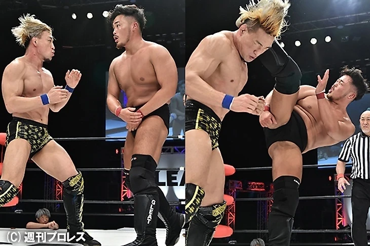 А вот Хаято, хоть и юный малый, но оказался не менее любопытной персоной: он выходец из JTO - промоушена ТАКА Мичиноку и даже из его прямых учеников. Но что не менее важно, так это его работа в ZERO1 - там он не только стал финалистом в дебютном для себя турнире Five Festival 2020 в прошлом году (он победил в блоке Б - а сам турнир сложен по круговой системе набора очков)... он вошёл туда в статусе мирового чемпиона ZERO1 в тяжёлом весе (!!!) (Прямо местный Брок Леснар, который также в 25 лет установил рекорд как самый молодой мировой чемпион WWE). Правда сразится с победителем турнира, коим стал Харли Джексон, ему не довелось - он встретился с Масато Танакой 1 января этого года на шоу Happy New Year 2021 и проиграл титул, успев его 2 раза защитить за 127 дней своего тайтл-рейна. После этого он полгода не возвращался в титульную гонку и с начала июня начал работать в GLEAT.