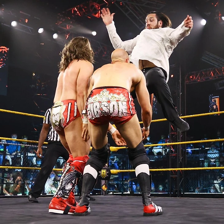 Но перед этим было показано промо про выступления Самоа Джо на NXT. Нам напомнили, что он первый в истории двукратный чемпион NXT, а на Тейковере потенциально может стать единственным трёхкратным обладателем этого титула.