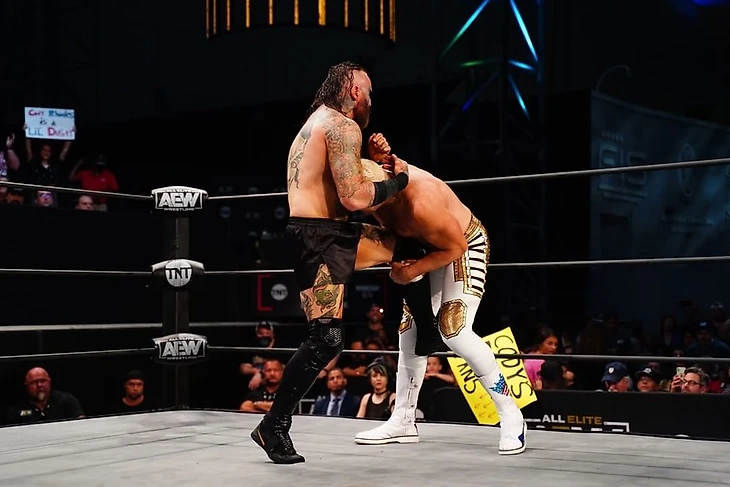 Хороший матч, я бы даже сказал лучший на шоу пока. Мне чертовски понравилась эта банальная, но так хорошо рассказанная история, про монструозного чемпиона и претендента-андердога. Не совсем классическая битва Давида и Голиафа, в которой Давид проиграл, потому что Миро просто должен был защищаться тут. Тем не менее, это, по большей части был именно такой телевизионный матч, какие я ожидаю от каждого выпуска Dynamite. Ли показал, что у него есть потенциал, и он может выдавать прям рестлинг, с историей, селлингом и вот этим всем. Миро — это просто Миро. В общем, до сих пор я видел, что шоу было из категории «окей», но я бы не сказал, что что-то меня прям радовало или приятно удивляло. Этот матч меня прям порадовал.