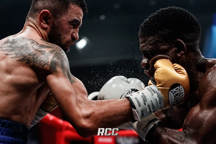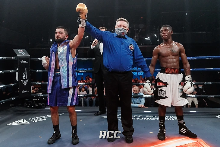 В шестой паре турнира RCC Boxing Promotions встретились Нарек Абгарян (Ереван, Армения, 14-1-0) и Сабело Нгебиняна (Кейптаун, 13-4-0). Поединок прошел в категории до 53,5 кг.