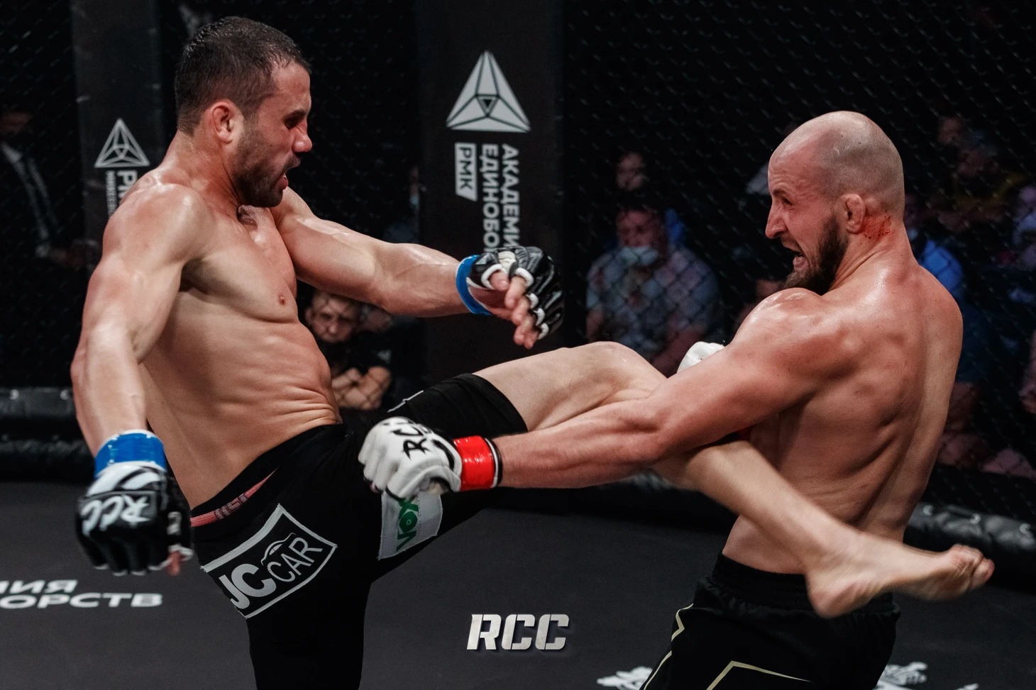 В шестом поединке вечера турнира RCC Intro 15 в октагоне встретились Артур Караваев (Екатеринбург, 14-6) и Андре Рикардо (Куритиба, Бразилия, 10-3-2). Бой проходил в категории до 77,1 кг.