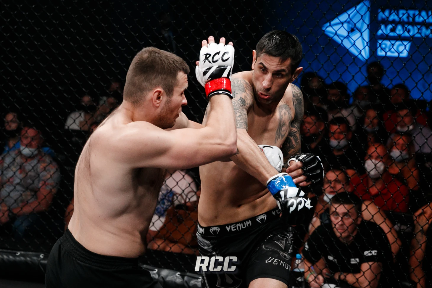 В со-главном событии турнира RCC INTRO 15 зрители увидели поединок Арсения Смирнова (Екатеринбург, 9-1) и Лукаса Альсиньи (Буэнос-Айрес, Аргентина, 7-2). Бой проходил в категории до 88 кг.