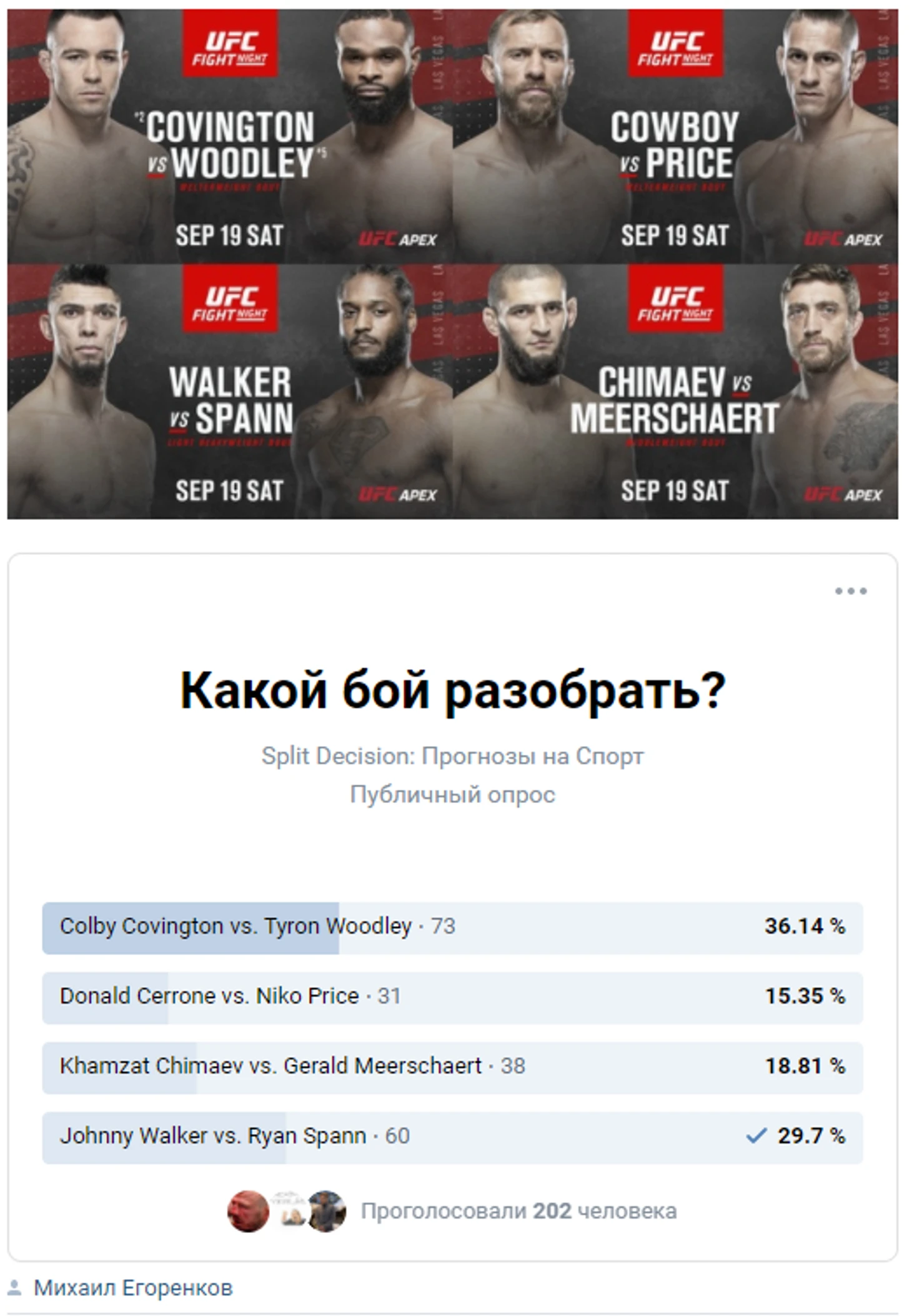Хочется видеть проявление инициативы в обсуждении предстоящих событий из мира мма. В чате много толковых ребят которые могут вести аргументированный диалог, думаю это пойдёт на пользу аудитории)