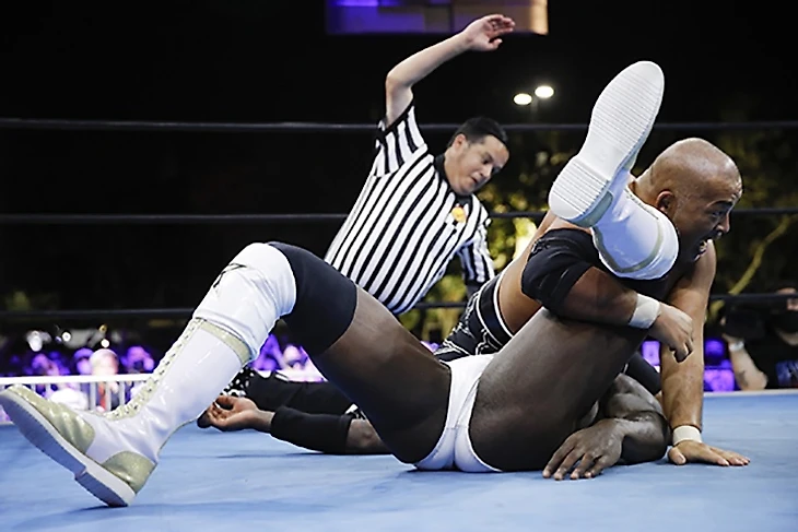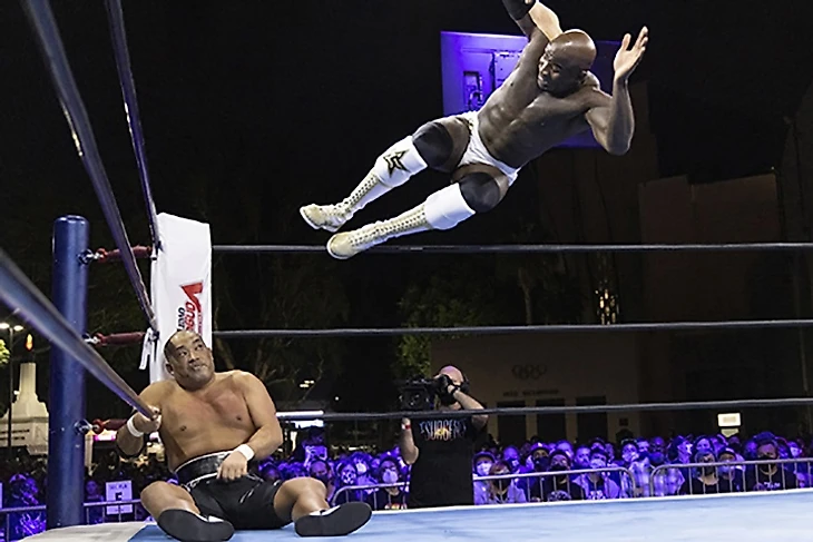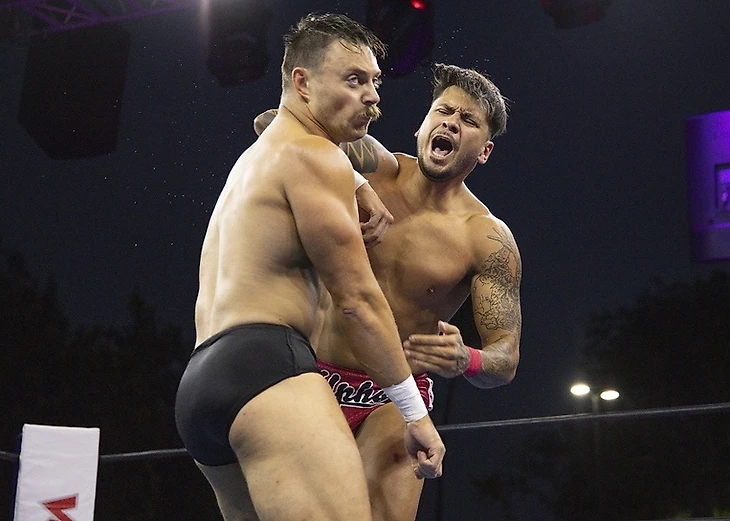 Танахаши встретили заслуженно тепло. Арчер же порадовал выходом. Не потому что выход был пафосным, а потому что на арену вышел старый-добрый Лэнс времен Suzuki-Gun, который с порога раскидал всех молодых львов и напугал рефери (что он делал потом вообще весь матч). Вроде бы, с G1 29 2 года прошло, но как будто ничего не изменилось. Кстати, последняя встреча этих двоих прошла как раз-таки на том Climax, и лучше оказался Танахаши. Арчер выиграл титул у Моксли в родном Техасе на специальном выпуске Dynamite, и защитил его на следующей неделе от, прости Господи, Хикулео на Fight for the Fallen. Естественно, учитывая то, что на арене появился Лэнс, грубо говоря, образца времен Suzuki-Gun, он и начал бой так, как подобает такому «Монстру». Вообще, все 19 с половиной минут, мы видели типичный матч не совсем, конечно, Давида и Голиафа, а монстра-хила и андердога-фэйса. За матчем, кстати, наблюдал Джон Моксли, восседавший рядом с титулом чемпиона Штатов. Первая, наверное, треть поединка прошла полностью под диктовку Арчера, который радовал, в основном, жесточайшими чопами, ударами и мощным тэклом. Потихоньку Хироши, который дерется «не мышцами, но сердцем» стал отбиваться, проводил собственные удары, флип сентон с угла и даже dragon screw, но американец отвечал на это фирменными Iron Claw, чокслэмом на апрон и проходом по канатам в стиле Гробовщика с последующим мунсолтом. В какой-то момент Лэнс даже Blackout провел, но слишком близко к канатам, так что японец успел положить ногу на канат до завершения отсчета. Второй Blackout Тана перевел в слингблэйд в воздухе, провел еще один, Twist&Shout, но только до 2, и инициатива вернулась в руки Арчера. Побив претендента (и разбив ему лицо), он снял защиту с угла ринга защиту и установил туда стул… в который сам и улетел головой, ибо «Эйс» реверсировал запуск. Получив Black Hole Slam, Хироши отбился от броска и сумел найти момент для Ace’s High. High Fly Flow на спину последовал, еще один классический, и Танахаши стал новым чемпионом Соединенных Штатов! После боя Арчер взял микрофон, вспомнил обо всех предыдущих матчах с Танахаши (все из которых, кстати, прошли в рамках G1 и все выиграл Хироши), заявил, что каждый раз они выбивают друг из друга весь дух, но при этом он не испытывает ничего, кроме уважения к «Эйсу», потому что Хироши является одним из величайших рестлеров. Затем Арчер взял с оппонента слово, что когда тот в следующий раз приедет в Соединенные Штаты, он первым делом заскочит в AEW, и даст Лэнсу матч-реванш за этот титул. «Я обещаю, Лэнс» - ответил Тана, а когда «Монстр» покинул арену, Хироши поблагодарил публику за поддержку, и пообещал, что еще выступит перед американскими фанатами. Ну и, конечно, шоу, в мэйн-ивенте которого победил Хироши, не могло не закончится игрой на воображаемой гитаре.