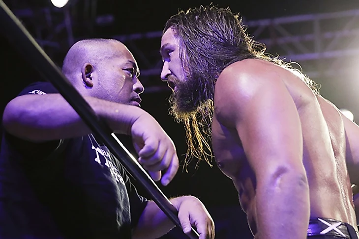 Рестлеры единожды встречались ранее, и Томохиро выиграл в довольно коротком поединке. Этот матч же продлился 16 с небольшим минут, и, имхо, был всем, что только можно было ожидать. С самого старта была очевидна разница в габаритах – Мус настолько выше Ишии, что его шоулдер тэклы прилетали куда-то в голову «Каменного Питбуля». В общем, на протяжении всего времени боя мы видели, что называется, hard-hitting battle, в которой рестлеры обменивались жесткими чопами, ударами предплечий, хэдбаттами и силовыми приемами. Несмотря на то, что Мус больше чем на голову выше оппонента, именно он порадовал не только жестким броулингом, но и несвойственным людям его антропометрических данных атлетизмом: он и невероятный спрингборд кроссбади с разворота провел, и дропкик сидящему на третьем канате Тому в стиле Окады. Японец на это дело отвечал все теми же страйками, лэриэтами и бросками, причем эпизодами завоевывал преимущество не «качеством», а «количеством», когда тупа «заспамливал» визави своими приемами. В концовке же Мус так и не смог провести финальный Rainmaker, а «Биг Том» показал, что и он «прыгучий» парень, дотянувшись своим энзигури до головы здоровяка. Слайдинг лэриэт стал началом конца для темнокожего рестлера, а коронный, практически идеально выполненный, брэйнбастер принес Ишии победу.