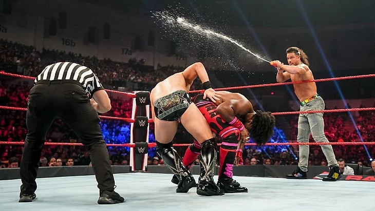 По своей сути, опять же, достаточно классический сегмент, но это именно тот случай, когда не содержание, а форма решает. Риддл, как всегда, прикольный. Реально, делайте со мной что хотите, но Мэтт прям нашел себя. При этом, он не «просто слепой дурачок», в отличие от того, что сделали из Никки Кросс, ибо у него образ вечно пьяного позитивного чувака, который нашел в Ортоне своего «бро» и не видит ничего вокруг, но в ринге он превращается в максимально опасного и жесткого соперника, в отличие от Никки, которая выглядит полной дурой всегда, даже в матчах, когда она является чемпионкой бренда. Это не к ней претензия, естественно, а к сценаристам. Просто вот она разница между хорошим по-своему придурковатым персонажем и плохим. Панч Стайлза про то, что растение, это самый очевидный подарок для Риддла, прям хорош, не знаю, почему на него не отреагировала толпа особо. В общем, это, конечно, не шедевр, но весьма симпатично.