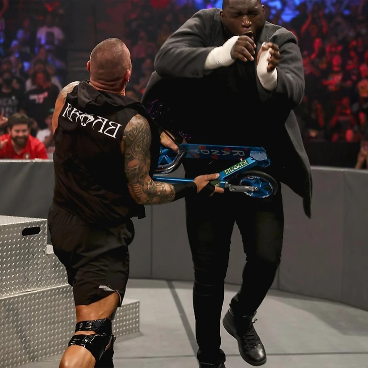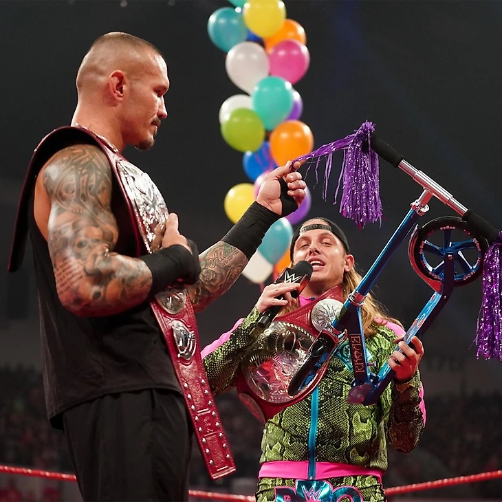 Мэтт вышел на украшенный ринг и кратко пересказал историю команды RKBro. Теперь, после выигрыша командных поясов, осталось только одно: устроить самую лютую вечеринку. Но чтобы она произошла толпа должна вместе с ним пригласить на арену лучшего бро Риддла — Рэнди Ортона. Наконец «Гадюка» вышел, дошел до ринга, а это, как вы понимаете, заняло какое-то время. Затем «Бро» попросил анонсера «сделать все, как мы репетировали», и тот объявил RKBro новыми командными чемпионами RAW. Салют в честь чемпионов, но Ортон выглядел не сильно воодушевленным. Мэтт же кайфовал. Он заявил, что выиграть титулы — это круто, но дружба не менее важна, чем титулы. Поэтому он приготовил подарок. После этих слов он взял из угла ринга самокат, украшенный кисточками, а на подножке красовалась надпись «Randy» и сердечки. Риддл сделал его сам. Возможно, с расстояния оценить такую красоту сложно, но Мэтт уверяет, что это лучший рождественский подарок, пусть сегодня и не Рождество. Он показал Ортону как легко этот агрегат открывается и закрывается. Он назвал Рэнди своим лучшем другом и любимым бро, поэтому просит принять этот подарок. Ортон взял его в руки. А на стэйдже появился Стайлз. За ним вышел Омос. «Бро» спросил недругов, те пришли вечеринку испортить или им есть, что сказать. «Феноменальному» есть что сказать. Он обратил внимание на самокат. Мэтт подарил Ортону самокат, чтобы Омосу было что ломать об колено. А вот Рэнди не подарил в ответ ничего. Никакого подарка, вкусняшки какой-нибудь или растение — это вообще самое очевидное, что можно Риддлу подарить. Даже обнимашку не подарил. Но у ЭйДжея есть кое-какой презент для «Бро». Называется «Феноменальный Локоть» прямо в лицо, который сотрет с этого самого лица эту глупую улыбку. Стайлз надерет Мэтту зад, как и всегда. И будет делать это до тех пор, пока они с Омосом не получат реванш. И начнется это прямо здесь и сейчас. Риддл признал, что проиграл на прошлой неделе. Но это было до воссоединения RKBro. А теперь, когда Рэнди в его углу, Мэтт способен на все. Он победит Стайлза, и использует для этого 3 самые опасные буквы: RKBro.
