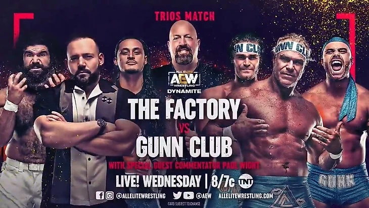 Gunn Club (Билли, Остин и Колтен Ганны) победили The Factory (КьюТи Маршалл, Ник Коморото и Аарон Солоу), после того, как Билли свернул КьюТи так как Маршалл отвлекся на Пола Уайта (5:50).