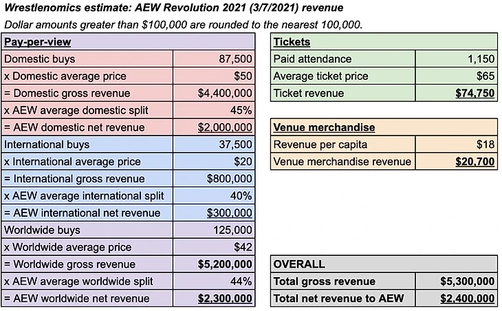 Wrestlenomics estimate of revenues related to AEW Revolution 2021 (3/7/2021)