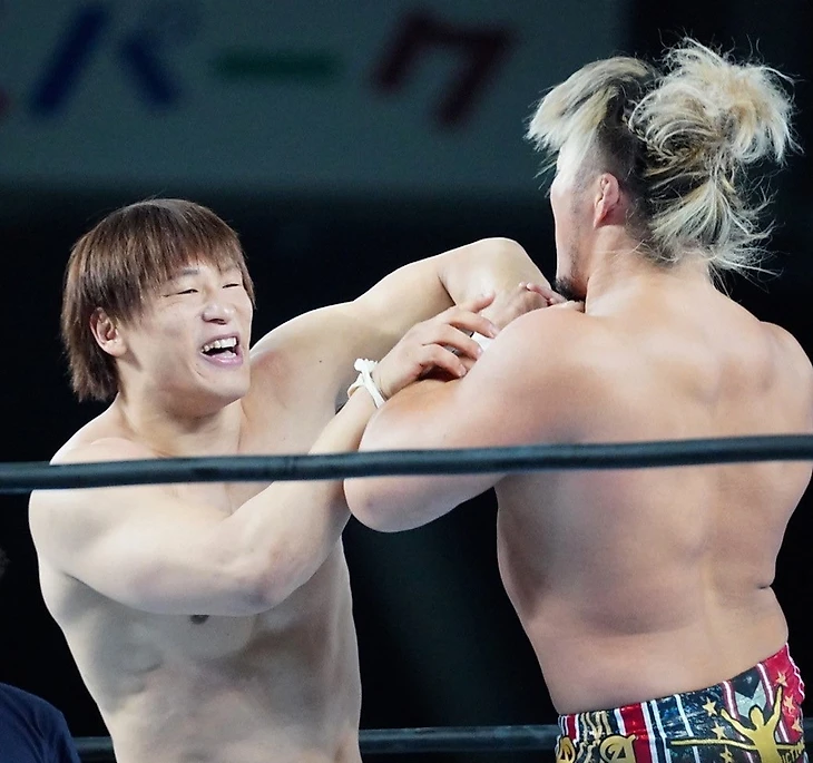 ШО получил новый титантрон, ремикс музыкальной темы и немного обновил свой внешний вид. Начался этот почти 25-минутный поединок бывших командных партнеров, а ныне, пожалуй, главных врагов, чуть ли не с тотальной доминации ШО. Вообще, надо признать, ШО, если можно так сказать, «работал первым номером», а ЙО терпел, крепился, показывал характер и выжидал моменты для своих острых атак. Много было борьбы и в ринге, и за его пределами. ЙО ловил визави атаками ног, даже Star Gazer у него прошел, но никак не мог выйти на свой фирменный Direct Drive. ШО на это отвечал работой над травмированной рукой бывшего приятеля, причем использовал для этого и стойку ринга, и баррикады. К концовке, когда рестлеры уже наобменивались бросками и жесткими ударами, ШО столкнул противника с рефери, добавив ЙО гарпун. Затем он притащил в ринг стул… но ЙО встретил его суперкиком, получив возможность использовать предмет мебели против бывшего друга… но не стал. Еще один суперкик прошел, и он приготовился к Direct Drive… но получил удар ниже пояса. Удар стулом по голове от ШО последовал, и он стал удерживать… но сам прервал пинфолл на счете 2… заключив ЙО в вариацию треугольника, которая усыпали его. Триумф ШО. После матча на арене появились ИВИЛ, Юджиро Такахаши и Дик Того в своем новом мерче. Судя по этому самому мерчу, эта троица стала субгруппировкой Bullet Club, получив название House of Torture. «Король Тьмы» протянул футболку победителю, явно предложив присоединиться к ним… и ШО, конечно же, принял это приглашение.