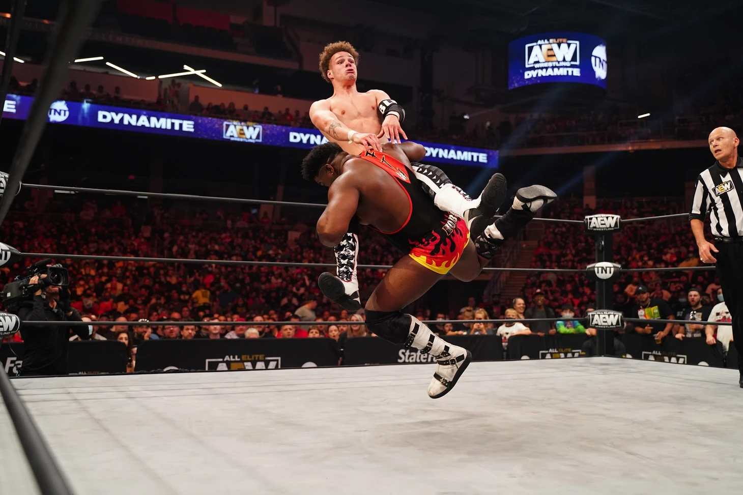 Хоббс - это просто ходячая катастрофа. Даже зрители в Цинциннати впали в небольшой ступор. AEW усиленно избегают WWE-шного тропа с рест-холдами, однако вместо них бездари вроде Пауэрхауса успешно используют всякие пинки, kneedrop'ы и прочий трэш ("успешно" в том плане, что получается не менее скучно).
