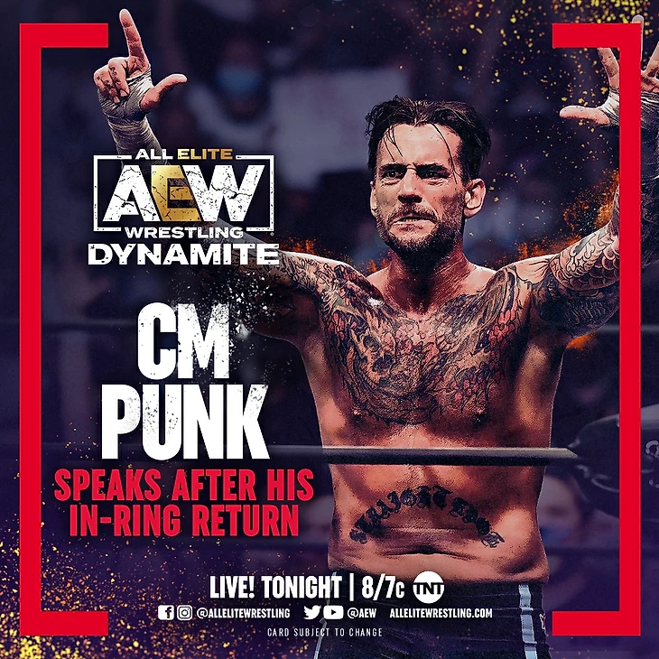 СиЭм Панк выходит на ринг. Панк благодарен Аллину, Стингу и Фанатам. Рестлинг — это как кататься на жестоком велосипеде и он снова в седле. Панк рассказал о том, чего нам сегодня ждать включая бой Минору Сузуки и Джона Моксли в мейн-ивенте. Также он воздал хвалы Тете Линде — сестре Брайана Пиллмана, которая вырастила его детей, включая Брайана Пиллмана-младшего.