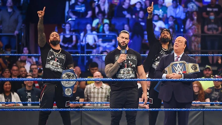 Рейнс в раздевалке настроил Джимми и Джея на грядущий бой. Они рулят WWE, Нью-Йорком и «Гарденом», так что должны уничтожить тех, кто хочет отобрать то, что принадлежит Bloodline. Оставшись один на один с Хейманом, Роман напомнил, что спас того. Почему Пол ничего не сказал ему про Брока на SummerSlam? На этом вопросе мы ушли на рекламу.