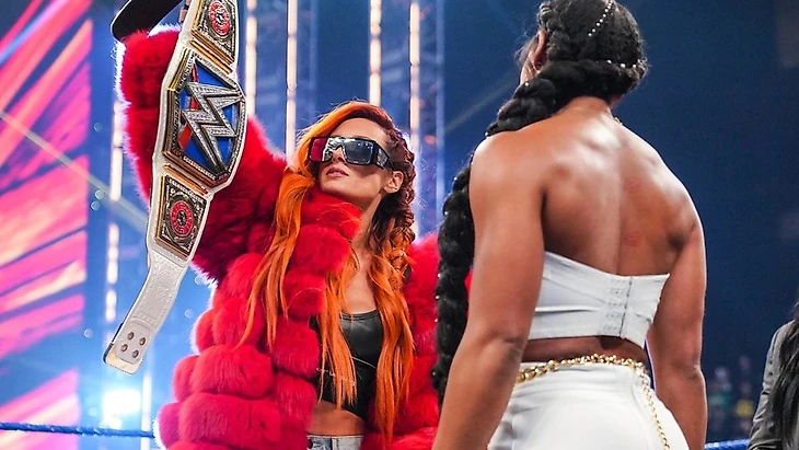 После рекламы мы увидели, что в ринге уже установлен стол, стоят кресла, а Бьянка стоит в компании Сони Девилл и Адама Пирса. Адам напомнил, что как только Белэйр поставит подпись в контракте, ее реванш за женское чемпионство SmackDown станет официальным. Вместо подписания бумаги, претендентка взяла микрофон, отметив, что она прошла долгий путь, и вот стоит на ринге Madison Square Garden. Затем она вспомнила, что когда оказалась с Линч в четырехугольнике на SummerSlam, она не ожидала, что будет защищать титул, но была воодушевлена, Ведь мы все знаем, насколько великолепна Бекки. Бьянка уважает ирландку как бойца и молодую маму, однако она также всегда знала Линч человеком, который никогда не избегает боя. Но многое поменялось с тех пор. На SummerSlam Линч победила за 26 секунд, застав Белэйр врасплох, и с тех пор очень часто об этом упоминает. И упоминает об этом Бекки потому что знает, что если бы они сошлись в нормальном матче 1 на 1, то исход был бы другим. Поэтому Бьянка теперь не так сильно уважает нынешнюю чемпионку SmackDown. Однако на Extreme Rules Бекки может вернуть себе немного уважения, в то время как «EST» вернет себе женское чемпионство SmackDown. После этого Белэйр поставила подпись в контракте. А на арену вышла Бекки Линч в мощной красной шубе и солнцезащитных очках.