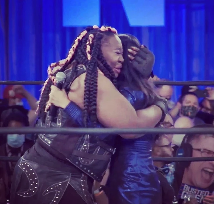 Только вот по их душу прибыла Невероятная Конг, а если она приходит... значит всем на ринге будет плохо. Что и подтвердилось, ведь Террелл быстро удалилась с ринга, Ким отошла в сторону угла, а Паола и Дженнсайд съели коронные финишеры Конг. Тэрин была в ярости от такого дизреспекта и едва не нарвалась на драку с самой Гейл, только вот у апрона Конг решила напомнить Ким о старых временах. Точнее так казалось с первых секунд этого пересечения взглядов, особенно когда Конг дала Ким возможность мирно вернуться в четырёхугольник. Но всё пошло иначе: Конг взялась за микрофон и завела речь, удивив не только зрителей. А удивила она эмоциональным откровением - не только о том, как она боролась с Ким, как она не щадили друг друга... Конг рассуждала о том, что в её судьбе Ким стала её половинкой. Именно Гейл дала Конг дорогу в эту жизнь, славу в её карьере и достижения всей жизни. И поэтому Конг дала понять, что она хочет уйти на покой с этим признанием - признанием заслуг Ким и благодарностью к ней за эти незабываемые годы. Гейл была в шоке от этих слов, но чуток придя в чувство также призналась Конг в любви - ибо Гейл также не стала бы великой без Конг. И на словах "Спасибо тебе, Конг" некогда заклятые враги крепко обнялись сквозь слёзы благодарности друг к другу, также вместе в обнимку уйдя с ринга под овации зрителей.