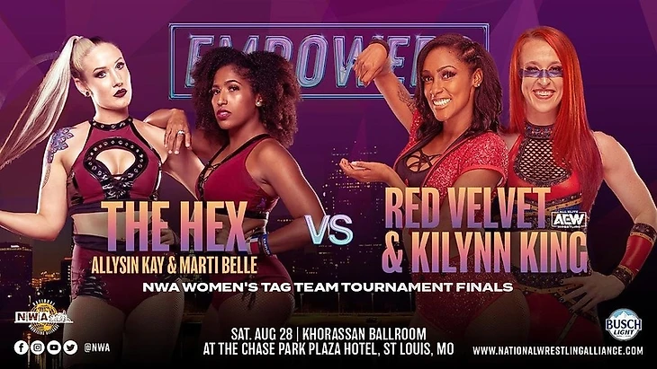 — Чуть позже состоялось интервью с первыми финалистками: Майра Гомес узнавала какие ощущения испытывают The Hex касательно всего вокруг возрождённых женских командных мировых чемпионств NWA. Кей и Белл говорили поверхностно о том, что они рады главному моменту - что в NWA женскому рестлингу теперь будет уделяться особое внимание и что больше девушек получат больше возможностей. Но разумеется именно Эллисин и Марти готовы начать эту новую главу со своей главной победы именно сегодня - они готовы стать первыми в современной истории NWA женскими командными мировыми чемпионками.