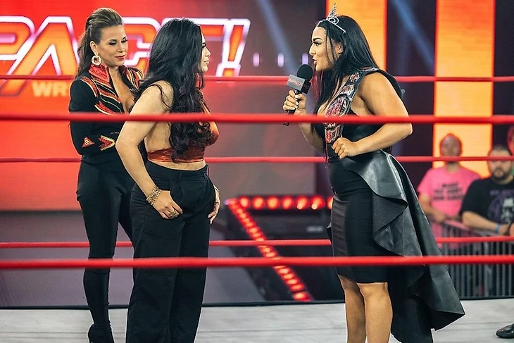 Состоялся выход на ринг члена Зала Славы TNA-IMPACT и 7-кратная главная женская Нокаут-чемпионка TNA-IMPACT Гейл Ким. Чувства переполняли ныне действующего продюсера IMPACT, ибо она говорила о том, как она была свидетельницей исторических моментов в женском рестлинге, где бы это не происходила. И Гейл счастлива, что она также смогла внести свой вклад в это развитие. Её речь была прервана выходом к ринг Дженнисайд и Паолы Блейз, которых сопровождала Тэрин Террелл. Последняя является старой знакомой для Гейл, ибо во времена перестройки TNA в IMPACT Террелл была одной из главных оппоненток Ким в период доминации Dollhouse. Об этом Тэрин не забыла упомянуть, устроив той прожарку и задев чувства ветерана TNA. Террелл в раздражающей манере требовала несколько раз от Гейл покинуть этот ринг, обозначив NWA как своё место - место, в котором никому Тэрин не даст сиять сильнее самой себя. Ким не послушала Террелл и последняя дала команду Блейз и Дженнасайд "прогнать" Ким с ринга насильно.