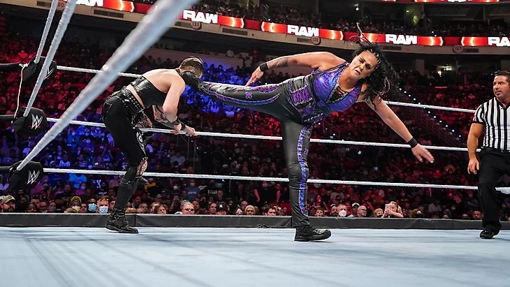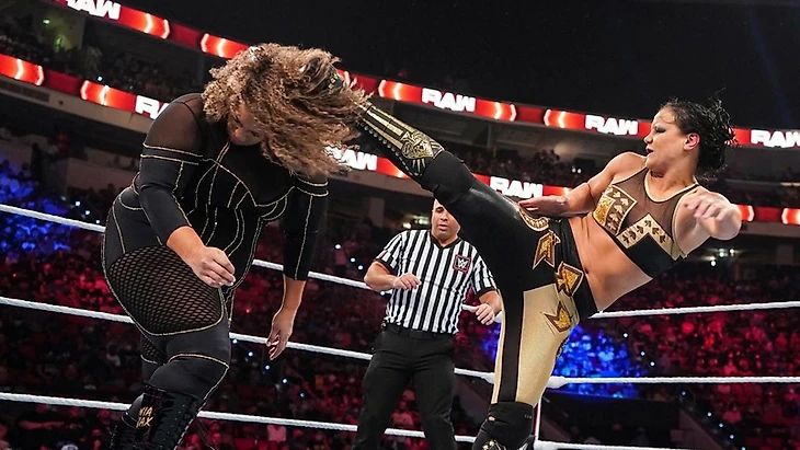 Перед матчем нам напомнили о развитии взаимоотношений девушек. Гонг прозвенел, и Найя начала вербально уничтожать бывшую подругу, сказав, что та вообще никто без самоанки. Попытки самоан дропа Шэйна избежала, услышав еще немного неприятных слов. Очередной лок-ап закончился олд-скульным шоулдер брейкером от Джэкс до 2, после чего Найя стала забивать соперницу в углу, но «Пиквая Дама» дала отпор. Серия ударов коленями, еще одно колено, третье! Kirifuda Clutch, но Джэкс поднялась на ноги, получив еще серию ударов и вновь попала в клатч. Найя попыталась сбросить соперницу с себя, но Шэйна ее не отпускала. «Я не могу дышать» — это былп последние слова самоанки перед тем, как рефери остановил поединок, присудив победу Бэзлер. Шэйна после завершения поединка выглядела какой-то сомневающейся в том, что она только что сделала… но тем не менее, она провела слайдинг кик бывшей напарнице на апроне. Затем она разобрала ступеньки, установила руку Найи должным образом и провела фирменный стомп. Подготовка к еще одному, но Джэкс стала просить о пощаде. Шэйна долго думала, и все-таки провела стомп, «сломав» руку самоанке. Крик Найи, прибежавшие на помощь судьи, и Бэзлер, как будто сожалеющая о том, что произошло — вот чем закончился этот отрезок шоу.