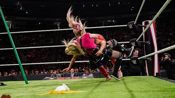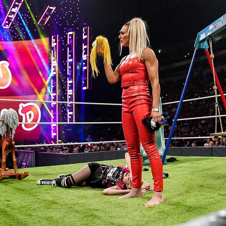 Публика ответила чантом «WOO!», на что Алекса заявила, что даже это изначально не Шарлотт принадлежало. «Давай ты не будешь говорить мне об оригинальности» — парировала Флэр. Блисс продолжила. Она подарила чемпионке куклу не ради того, чтобы играть в игры разума, а как утешительный подарок. Потому что ей жаль Шарли. Даже эгоцентричная, нарциссичная сука, как Флэр, заслуживает счастья. Лекси можно называть сумасшедшей, да как угодно можно называть, но она, по крайней мере, знает, кто она такая. И ей не нужно все время хвататься за титулы, чтобы оставаться актуальной. Поэтому сегодня ее можно называть безумной, однако на Extreme Rules Шарлотт назовет ее чемпионкой. «Разве это не звучит весело?» — спросила Блисс. Флэр же заявила, что Блисс так и не суждено будет узнать, кто же такая Шарлотт без титула… И толкнула претендентку. Блисс попыталась атаковать ответ, но чемпионка отбросила ее, сняла обувь и провела биг бут, обратив внимание на кукол. Алекса попыталась применить слипер, но «Королева» сбросила ее с себя, взяла Чарли… и оторвала ей голову. Потом она попыталась взять Лили, но Блисс снова применила слипер. Тщетно, но претендентка улучила момент для DDT, на чем сегмент, собственно, и подошел к концу… но Шарли под конец еще немного потрепала то, что осталось от Чарли.