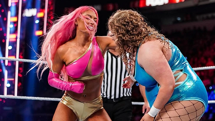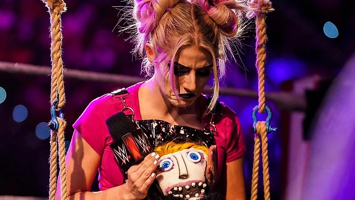 Раньше она выходила на ринг с титулами, а не с куклами. Как Алекса себя чувствует, когда ее кукла популярней самой рестлерши? Тем не менее, причина, почему Блисс раньше была чемпионкой заключается в том, что они с Шарлотт никогда не выступали на одном бренде. Сейчас же «Королева» видит, что все эти игры разума — это просто шутка. Но вот чего Шарли действительно понять не может, это то, как она докатилась от мэйн-ивента WrestleMania до игр с куклами. Флэр не переодевается, не играет ни во что, она такая, какая есть. Она уже побеждала «Почти Супергероя», побеждала «Ночной Кошмар», а теперь ей предстоит побить взрослую женщину, которая одевается как малый ребенок. Но она понимает, что все эти игры Алексы — это крик о помощи, так что Шарлотт возьмет на себя ответственность и вобьет немного разума в голову Алексы. Вопрос в том, хочет Блисс этого сегодня или подождет до воскресенья. Лекси ответила, что все уже это поняли. Флэр сама-то не устала слушать, как она сама же каждый раз говорит о своей исключительности? Она выиграла больше титулов, чем любая другая рестлерша… Что значит, что она проиграла титулов больше, чем любая другая рестлерша. Претендентке нравится, что этот их разговор стал таким личным, девчачьи разговоры по вечерам, они такие. Но у нее назрел вопрос: кто такая Шарлотт без титула? Никто не знает, даже сама Флэр. И если не будет титула, она никто. Ей не чем больше хвастаться. На самом деле, Блисс не нужно даже устраивать игры разума, чтобы обнажить уязвимые места чемпионки, ведь у нее все прям на лице написано. Она так боится потерять пояс. Что она вообще будет говорить фанатам?