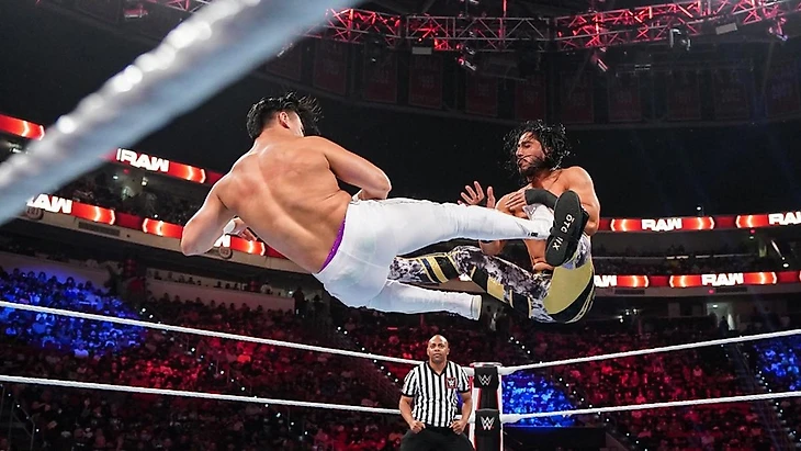 Для трех минут в бою было прям много хорошего экшна, на контрасте с теми же Найей и Шэйной. Я, опять же, отдам должное WWE, что они хоть как-то постарались объяснить нам воссоединение Гарзы и Каррийо, учитывая, что у них прям вражда была в прошлом. Пусть не очень убедительно, но хоть попытались, а это уже прогресс. И по-хорошему, только что сформированная команда должна побеждать и набирать momentum, так что все было сделано относительно правильно. Вот только Али опять слили, да и вообще, не успели они с Мансуром хоть как-то себя показать (а я напомню, что считаю, что у их тандема прям было валом потенциала), так, наверное, пора уже позабыть про них.