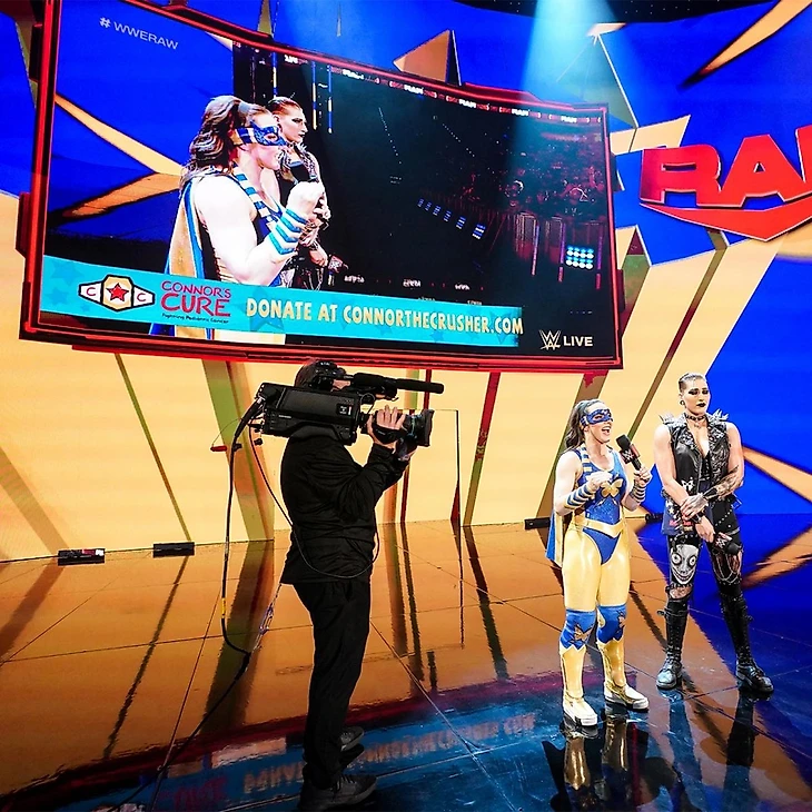 Претендентки вышли на стэйдж с микрофонами и Никки заявила, что перед матчем за титулы они с напарницей хотят поговорить о друзьях WWE — организации Connor's Cure. Рипли заявила, что мальчик Коннор когда-то вдохновил WWE присоединиться к борьбе с детской онкологией, и с тех пор WWE вместе с фанатами собрали миллионы долларов на лечение больных детишек. Также они помогли собрать финансы для проведения исследований в этой области. Австралийка была прям взволнована, когда говорила. Никки добавила, что им с подругой выпала честь и привилегия выступать на этом ринге, но перед матчем девушки хотят сделать 2 вещи. Во-первых, они посвещают этот матч детям, которые борются с раком и всем, кто поддерживает Connor's Cure. А во-вторых, когда Рипли отсчитает до 3, они предлагают всем зрителям показать букву «V», в честь победы (Victory). После рекламы нам напомнили о событиях прошлой неделе между представительницами команд.
