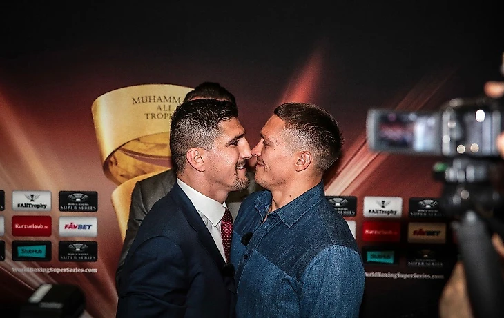 Волею сетки в четвертьфинале Усик встретился с немцем Марко Хуком (40-4-1), который еще во время пресс-конференции вел себя наигранно и пытался спровоцировать украинца на конфликт.