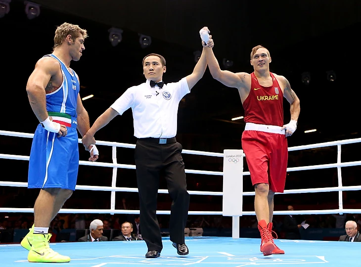 На лондонскую (the circle is closed) Олимпиаду Усик ехал фаворитом и капитаном сборной. Одолев поочередно начиная с ¼ финала Артура Бетербиева и Тервела Пулева (с которыми он расправился и годом ранее на чемпионате мира), он встретился в финале с итальянцем Клементе Руссо. 14:11. Усик забирает олимпийское золото.