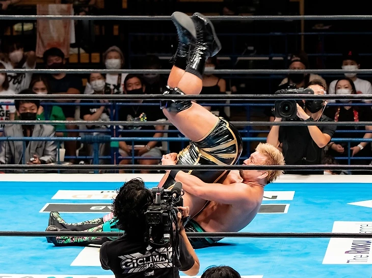 До этого рестлеры дрались 7 раз, причем и на G1 разных лет, и на NJ Cup, и за чемпионство мира. ИВИЛ же смог победить только дважды: на одном из «Клаймаксов» и в финале New Japan Cup 2020. К рингу «Короля Тьмы» провожал Дик Того, so you know what it means, как говорил легендарный. Почти на самом старте ИВИЛ покинул ринг, поговорил с Того, и тот отвлёк Казучику. Этим лидер HoT и хотел воспользоваться, но «Рэйнмэйкер» быстро отбился, проведя слэм, сентон и серию ударов локтем. Окада разогнался, и у канатов его зацепил Дик, позволив ИВИЛУ перехватить инициативу. Естественно, лидер CHAOS был отправлен за пределы четырехугольника, где был направлен спиной в ограждение. Естественно, ринг-анонсеру опять досталось от очередного слэма в ограждение, а защита с одного из углов была заблаговременно снята. В ринге бывший двойной чемпион IWGP провел тэкл и слэм, но удержания победы не принесли, так что Казучика был отправлен на свидание с незащищённым углом. От бостонского краба Окада спасся у канатов, а потом ушел от атаки в «оголенном» углу, так что в него влетел сам ИВИЛ, получив ещё и некбрейкер. Ко всем бедам ИВИЛА добавились ещё и бэк элбоу с фирменным DDT, но он выдержал. Снова «Король Тьмы» покинул пределы ринга, а Казучика зачем-то отправился за ним, так что опять пострадал ринг-анонсер, чей стол вместе с ним самим был обрушен очередным впечатыванием «Рэйнмэйкера» в баррикаду. Затем ИВИЛ взял стул, огрел им визави, усадив затем. ИВИЛ разогнался для атаки, но Казучика увернулся и подсечкой направил оппонента лицом в этот самый стул.