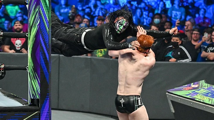 В случае с Блисс и Флэр послематчевое уничтожение куклы не повлияло на мою оценку. Потому что оно произошло после матча. Тут же буллщит произошел в концовке, почти полностью уничтожив отличный мэйн-ивент и в моих глазах, да и в глазах многих. Тем не менее, я поставлю исполнителям 3 с небольшим за старания. Они не виноваты, что букеры гении просто. Как кто-то где-то отметил, очень иронично, что после Extreme Rules на WWE Network показывали подкаст Остина, в котором Роллинс рассказывал, как хотел придушить Винса за Hell in a Cell матч с «Извергом» в 2019 году. Так вот… Что мы имеем? Мы имеем отличный матч, который идет так как надо, наконец показываю, what extreme rules is all about. В самый нужный момент, прям по заветам Bullet Club и прочих подобного рода тандемов, Романа спасают от поражения Усо. Пока еще все окей. Но вдруг, после гарпуна через баррикаду нам возвращают красное освещение, что уже выглядит очень плохим знаком. «Демон», прям как реинкарнация того самого «Изверга», оживает и начинает уничтожать все вокруг. И вот сейчас он победит… но канат под ним проваливается, и внезапно вся «демоническая магия» пропадает, и он проигрывает. После того как канат магическим образом проваливается, это уже не «Демон», а просто Финн Балор. Почему канаты провалились? Предположим, мы получим на это ответ (в чем я немного сомневаюсь). Но кто-нибудь мне ответит, почему это обстоятельство лишает Финна его сил? И кто-нибудь мне объяснит, откуда эти силы вообще взялись? Я имею ввиду концовку, красный свет, вот это все. И если еще «режим Изверга» можно хоть как-то попытаться объяснить, то как мне объяснят тот факт, что еще и музыкальная тема заиграла? До такой глупости, как врубание музыкальной темы даже в случае с последним образом Брэя Уайатта не додумывались, ведь мы все понимаем, что музыкальная тема написана людьми, включают ее тоже люди на шоу. Я допускаю, что какие-то потусторонние силы станут играть с освещением на шоу, ибо это все-таки такой «штамп» из массовой культуры, но что-то я не помню, чтобы демоны любили включать музыкальные темы рестлеров. Зачем она была нужна в концовке. Ну и да, как вишенка на торте «Демона» слили, как принято говорить. Что может быть хуже слива «Демона»? Двойной слив «Демона». Потому что сначала его «слили» тем, что превратили в «Fiend Rip-Off», а потом он еще и удержан был. Ах, да, Финн же уже перестал быть «Демоном» после падения с канатов, так что можно считать один из самых защищенных образов не слитым? Fuck this bullshit, короче, серьезно.