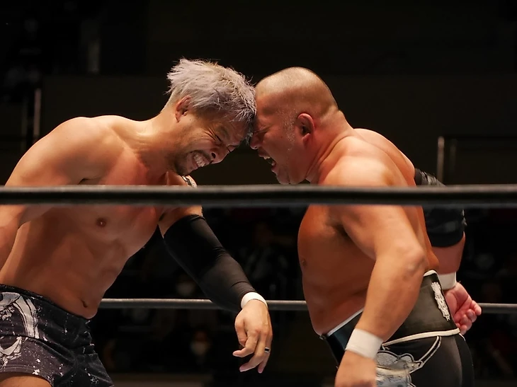 Счет в противостоянии 2-0 в пользу КЕНТЫ. Рестлеры дважды встречались в 2019 году и боролись за чемпионство NEVER в открытом весе. Гонг прозвенел, и КЕНТА укатился за пределы ринга, изображая из себя матадора, который пытается спровоцировать «быка» Томохиро на атаку. Наконец представитель Bullet Club так обнаглел, что подошел слишком близко к канатам, и Ишии затащил его обратно в четырехугольник, проведя лэриэт и шоулдер тэкл. Действие перетекло за пределы ринга ради наших обязательных «свиданий» с баррикадами. Оказавшись рядом с тайм-кипером, КЕНТА схватил гонг и ударил им оппонента так, что рефери отлетел, направив Тома еще и в стойку ринга плечом, а потом и в баррикаду, причем очень-очень жестко. В ринге КЕНТА начал развивать захваченное преимущество, концентрируясь немного на плече оппонента. Затем легенда NOAH снял тернбакл с угла. Запуск в этот самый угол, правда, был реверсирован, и спина КЕНТЫ встретилась с оголенными креплениями канатов. Осыпав недруга чопами и ударами предплечий, Томохиро получил tornado hot shot на канаты.