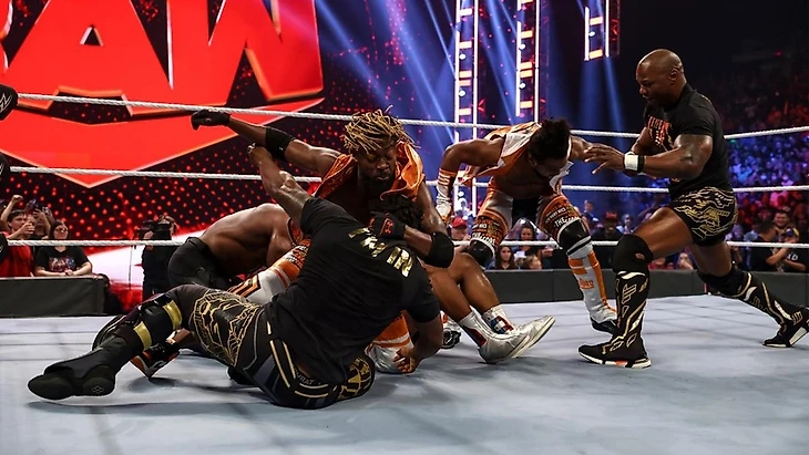 Появление Шелтона Бенджамина и Седрика Александера, а также прибытие на помощь Биг И Кингстона с Вудсом и последующая драка едва не привела к большой беде. Но группа рефери и продюсеров шоу развела обе стороны друг от друга, а Адам Пирс представил свой вариант решения образовавшейся проблемы. Биг И и Бобби Лэшли получат мэйн-ивент выпуска, но теперь их титульный рематч пройдёт в стальной клетке - чтобы избежать новых вмешательств.